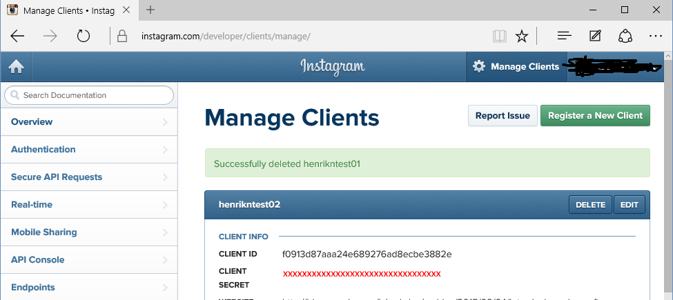 <appSettings> <add key="MS_WebHookReceiverSecret_InstagramId" value="Instagram Client ID" /> <add key="MS_WebHookReceiverSecret_Instagram" value="Instagram Client Secret" /> </appSettings>