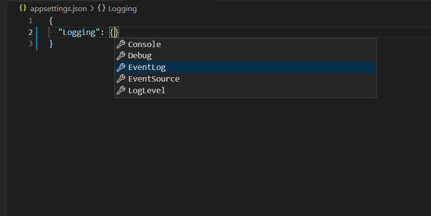 Visual Studio and Visual Studio Code now support IntelliSense for appsettings.json files. For Visual Studio Code, the support comes with C# extension version 1.23.8 or later.